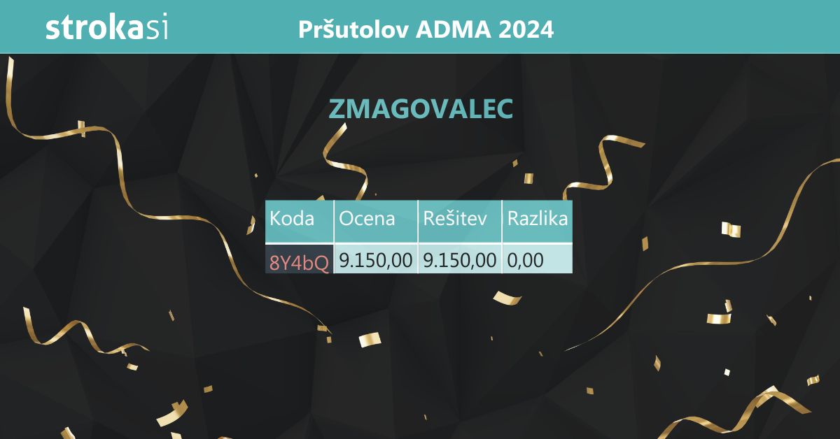 Zmagovalcu še enkrat iskreno čestitamo in ga vabimo, da nas kontaktira za prevzem nagrade na ccc@stroka.si ali na telefonski številki 02 88 79 780.
